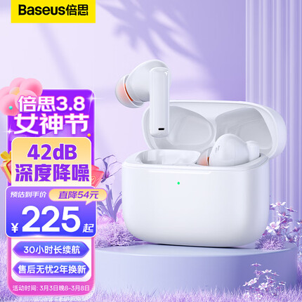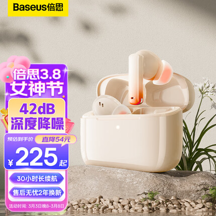 1.2.倍思 M2 蓝牙耳机真无线入耳式主动降噪游戏通话降噪礼物长续航通用苹果华为oppo小米手机 米白色