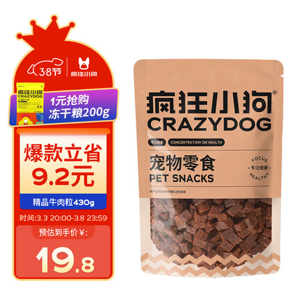 [wptao _title=”疯狂小狗 宠物狗狗零食泰迪金毛幼犬成犬训练奖励 精品牛肉粒430g” price=”20.8″ url=”https://item.jd.com/5357154.html” _url=”https://union-click.jd.com/jdc?e=&p=JF8BANgJK1olXgIAXVZUCU8VAF8MGV8TXQIHZBoCUBVIMzZNXhpXVhgcDBsJVFRMVnBaRQcLWQQGUl5ZDVRORjNVKwFuNmBeLyBDaAJxVAtOf18dJwF0Ki5RBHsUC2YJHlwVVQcyV1ZUCU4UAWoLK2sVXDZAOhcZQxJJRy1MSQJLAlAyVl9cDUsTA2sNH2sVWgALV1lcD00eBGsKK1sdWTbWwcaIhOvApf7Qq_klbTYBZG5tCHsUMzFmGggTXwdRA18zVR9cVmxLSQx7XQQAVFxVCU0SM20JGlkXbTY” coupon=”https://coupon.jd.com/ilink/couponActiveFront/linkKey/front_index.action?linkKey=AAROH_xIpeffAs_-naABEFoe367Joh9fU2WIA6TjXuFkS7OG0C85rxyLSlHFwjYsgituOvdUJJCf4-cYJTvFdF8txaNTLg&to=https://mall.jd.com/index-1000088881.html#wptao” coupon_value=”5″ site=”京东” time=”1678260680″