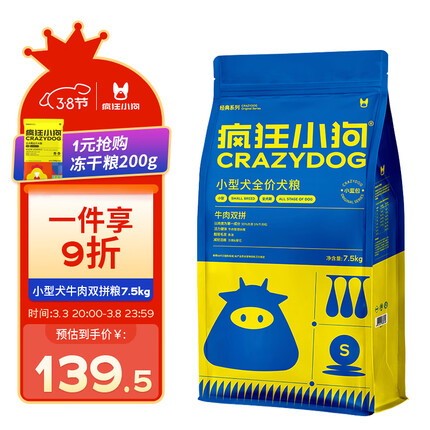 疯狂小狗狗粮到底怎么样?还不错,口味有挺多选择,原材料也比较新鲜,加工比较安全,购买过的人评价是,嚼劲也不错,营养成分高。疯狂小狗狗粮价格是?根据不同克数,价格是15-500,一些小零食均价是在30元,20KG左右的狗粮需要200多块钱,比较下来,性价比也很高。