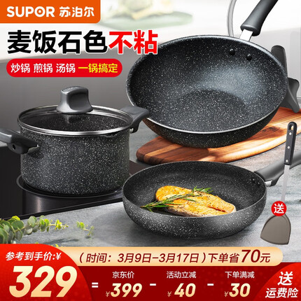 1.4.苏泊尔(SUPOR)麦饭石色不粘锅具套装 炒锅+煎锅+汤锅