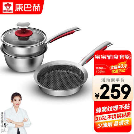 1.7.康巴赫316L不锈钢锅具套装婴儿奶锅平底不粘锅宝宝辅食锅套装