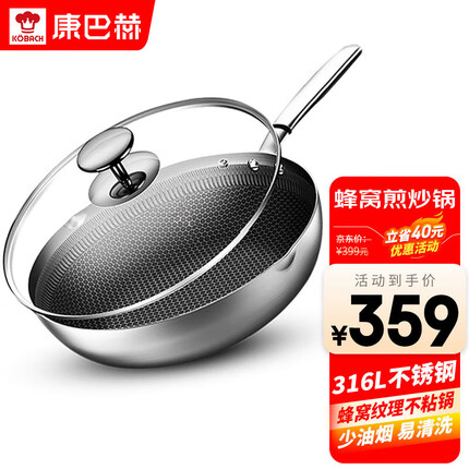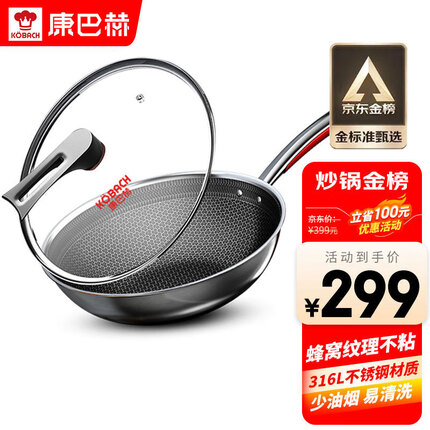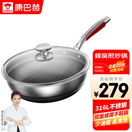 1.3.康巴赫炒锅不粘锅316L不锈钢炒菜锅旗舰S款蜂窝锅32cm电磁炉燃气灶通用
