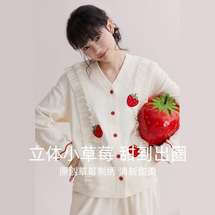 红豆睡衣属于中高端产品,风格整体比较简约,纯棉面料,舒适度比较高。睡衣表面也带有一些小刺绣,美观度比较好,线头和整体设计都考虑到了一些小细节,比较用心。