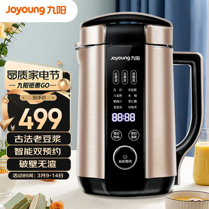 九阳豆浆机1.3升适合几个人用?适合3-5个人用。九阳豆浆机1.3升多少钱一台?有279.9元的,也有499元的。