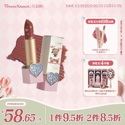 花知晓口红质量怎么样花知晓泰迪熊口红怎么样?上嘴比较滋润,也不太沾杯,颜色整体水润为主。包装比较可爱,拿在手里比较漂亮。花知晓口红什么档次?属于中档产品,价格上比较平价,适合学生党,多买几个自己喜欢的色号,也保证了产品的质量。