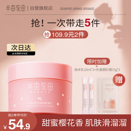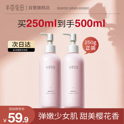 半亩花田身体乳带有一点樱花香,使用久了,肤质柔软度会增加,成分比较安全,所有肤质适用。和磨砂膏搭配使用,效果比较明显。