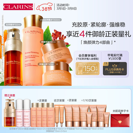 1.4.娇韵诗焕颜4件套礼盒(双萃+精华水+日晚霜)面霜保湿补水护肤品套装礼物