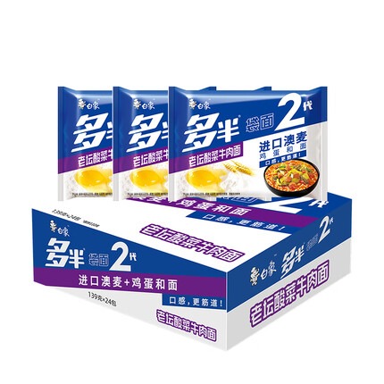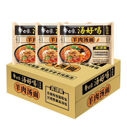 白象方便面中,一箱24包的,售价,有60多的羊肉汤面。另外,也有50多的老坛酸菜牛肉面,以及,重庆小面。