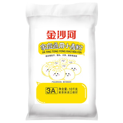 金沙河面粉系列很多,针对专门做包子、馒头的面粉,它有5kg的雪花中筋面粉,量大够用,也有相对来说少一些的自发小麦粉2.5kg,方便存储使用。