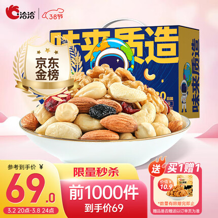 洽洽坚果礼盒,是每日坚果小包装,780g,一共30小袋,里面添加了4种坚果,和3种果干,一共149元,营养相对来说很均衡,口感丰富,搭配酸奶做早餐,饱腹感会比较强。