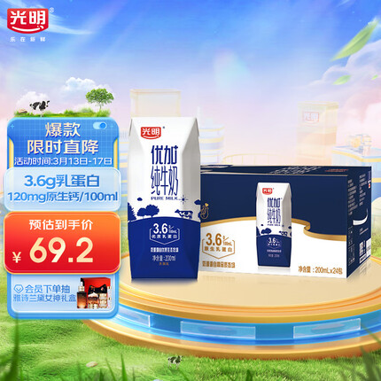 [wptao _title=”光明 纯牛奶250mL*24盒(新老包装随机发货)家庭量贩装 礼盒装” price=”74.9″ url=”https://item.jd.com/100001600621.html” _url=”https://union-click.jd.com/jdc?e=&p=JF8BAN8JK1olXwUKVF5fAEkVAF8IGloUXAYFVV9aC0snRzBQRQQlBENHFRxWFlVPRjtUBABAQlRcCEBdCUoWAm8PGloSXgYdDRsBVXtIem1wQT9TFmNmDD4ECBZpWwtAYl5DUQoyV1ZUCU4QA2cJK1gdVAcHV1xYC3snA244WTVDAV1XV19eC1cXM20JGl4VWQYGUVptCEwRCmkPG1gTVQYAU25dAE8n1_qQzte1iqCTjO7_OHsnAF84K1slXjZcOl8ODkhFAT1adQZCW1kHAVsVZkgQAWwJG1sQWzYAVV9fCnsn” site=”京东” time=”1678761283″