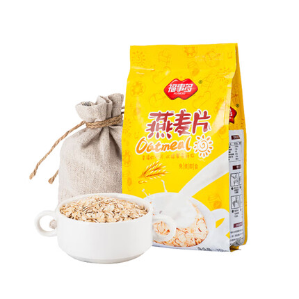 福事多燕麦片,膳食纤维比较高,免煮速食,比较方便。适合通勤和学生党上班吃。燕麦原产地优质,吃起来也比较安心,搭配牛奶口味更好一些。