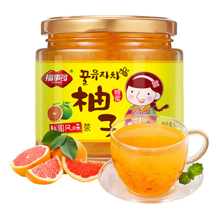 福事多蜂蜜柚子茶,味道比较好,果肉肉眼可以看见,选用的蜂蜜也是百花蜜,用材比较好。早餐还可以直接涂抹在面包上,替代果酱,口感不错。冲泡的话也比较容易散开,口味酸酸甜甜的,比较好。