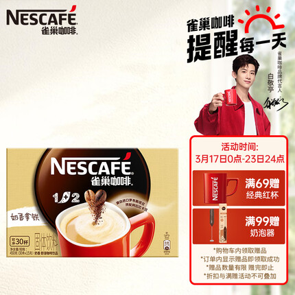 [wptao _title=”雀巢(Nestle)速溶咖啡 1+2 原味 微研磨 冲调饮品 盒装30条450g 白敬亭同款” price=”59″ url=”https://item.jd.com/100021363497.html” _url=”https://union-click.jd.com/jdc?e=&p=JF8BAOcJK1olXgIKXFpdD08VAl8IGloUXgYAU1xYAE0nRzBQRQQlBENHFRxWFlVPRjtUBABAQlRcCEBdCUoWAG8KHFkQVQAdDRsBVXsfCzFbbwtSVGRYDDUJd0hFCm1Ucih1UQoyV1ZUCU4QA2cJK1gdVAcHV1xYC3snA244SDVKCURHCQozWhVAVDtcdQ5FBVtKZFxcCU4XB28MHl8lXQEEXF9fAU0eCmcLHGsVVQIygMvF3ce31MmZw-u3bTYyV25tOEsnAF9WdVpGWwQDBwlcZhZAUWZaTlhWMwQBV19dAU8fM20JGlkXbTY” site=”京东” time=”1679038794″