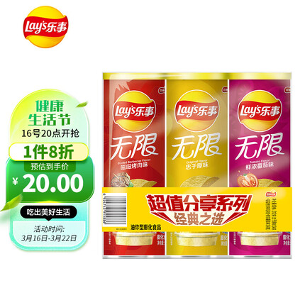 [wptao _title=”乐事(Lay’s)无限薯片 休闲零食 104g*3组合装(番茄+原味+烤肉)膨化食品” price=”25″ url=”https://item.jd.com/963181.html” _url=”https://union-click.jd.com/jdc?e=&p=JF8BANgJK1olXwYEVFhbDUkWAl8AHFkVVAYyEAEFVhQnWipNWhkeQxhaEQoBFxBCHD1WR0UdWgQCXV5CUQ5LXl9yTlJCXm5wKjwlSA5vBzASBR5nPVRiWFJtC0MeAmoPG1MUbQUKXV9YC0kSAF84G1olDmhZATBbDUpFBz1cGAhAD1EGZFxcCU4XB28MHl8lXQEEXF5eCUwfBW4AGWsVVQIygMvF3ce31MmZw-u3bTYyV25tOEsnAF9WdVpGWgMFVAwIZhZAVjIKUh5MMwMBXVdUDkkSM20JGlkXbTY” site=”京东” time=”1679120701″