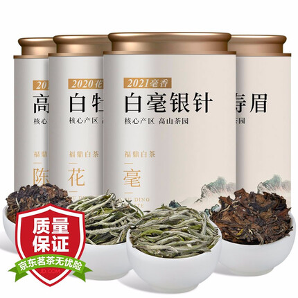 2.2.七春 茶叶福鼎老白茶寿眉白毫银针贡眉白牡丹4种组合300g礼盒配送礼袋
