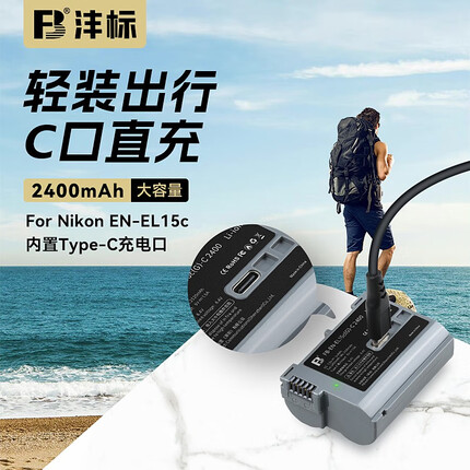 ¥144 · 京东1.3.沣标(FB)EN-EL15c尼康Type-C口直充相机电池Z8 Z7II Z6II Z5 D7500 D7200 D7100 D7000 D850 D810 D800 【2400mAh】USB-C口直