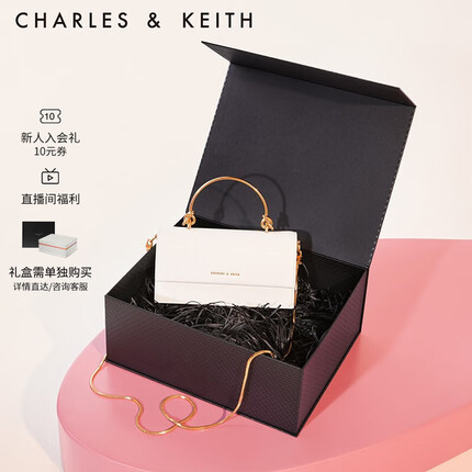¥639 · 京东1.2.CHARLES&KEITH生日礼物质感拎手提包小方包单肩斜挎包包女包女士CK6-10840314-3 White白色