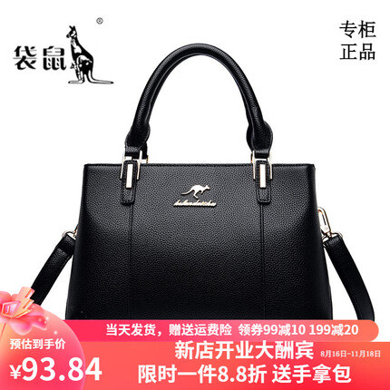 ¥68 · 京东1.4.袋鼠轻奢品牌真皮女包2023新款时尚大容量手提包头层牛皮中年妈妈包女 黑色 真皮授权