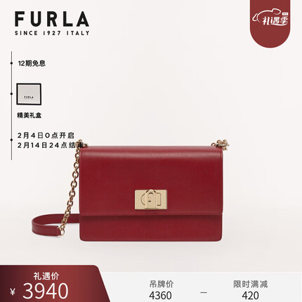 1.2.3.芙拉(FURLA)【情人节礼物】FURLA芙拉经典款1927女士小号牛皮单肩斜挎链条包 车厘子红色
