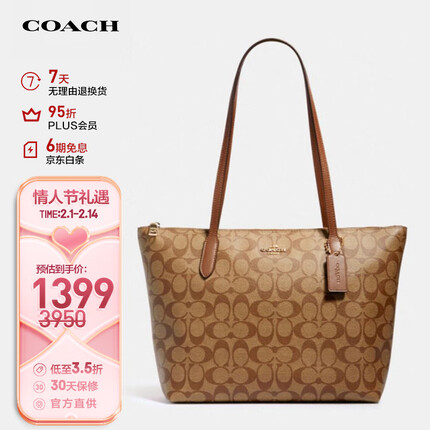 2.2.4.蔻驰(COACH)女士大号托特包单肩手提包浅棕色PVC5696IME74