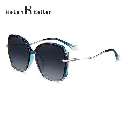 1.5.海伦凯勒偏光太阳镜女士圆脸墨镜防晒眼镜韩版潮大脸墨镜轻商务 H8928N20透蓝渐进框+蓝灰渐进